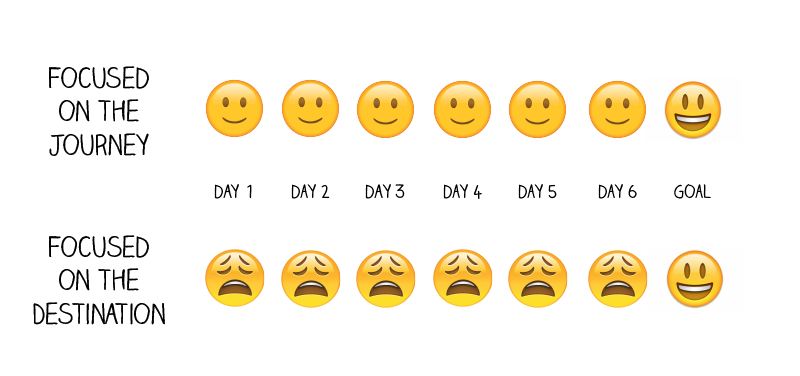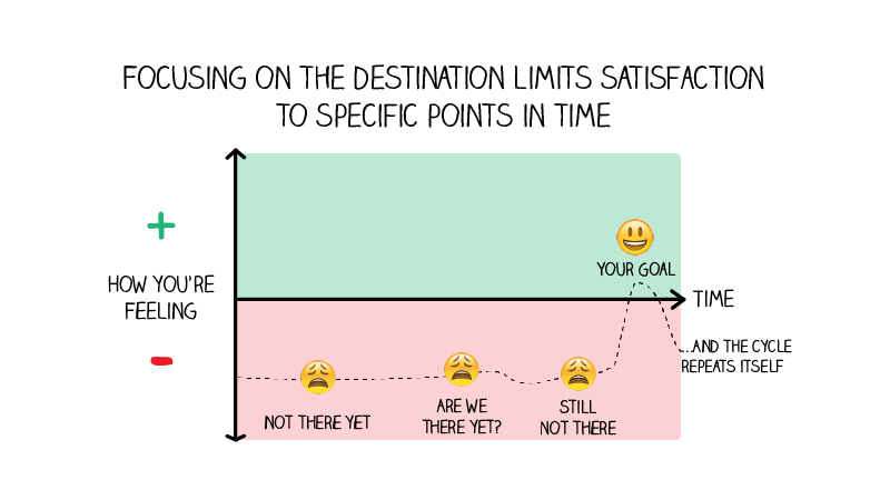 - Focusing solely on the destination limit our sense of satisfaction to very specific points in time - meaning we can go long periods of living without satisfaction.