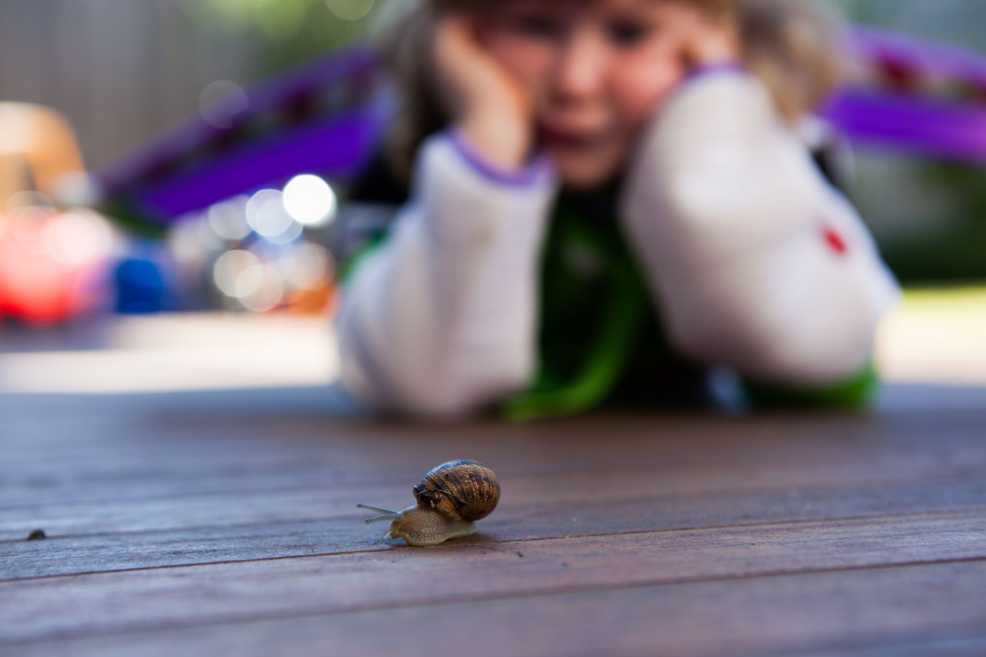 Despite all this, I didn't want to be the only one who didn't submit a photo, so I decided to give the challenge a go and stepped out into the backyard (the only place within ten steps not covered in toys) and right on the limit of 10 steps found a snail sliding across our back deck.